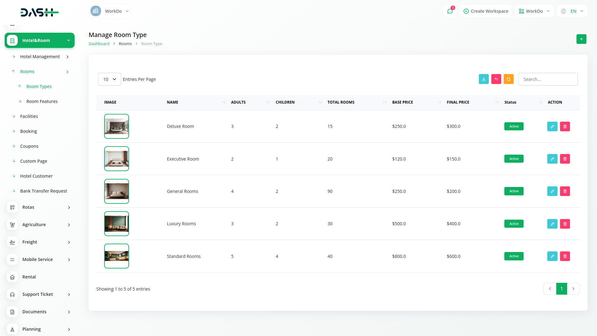 Hotel & Room Management provide Facilities people all over the world and make booking hotel rooms online easy and fast. Easily manage your hotel & room management, Room Types, Room Features, Facilities, and Room Booking from one intuitive dashboard.
