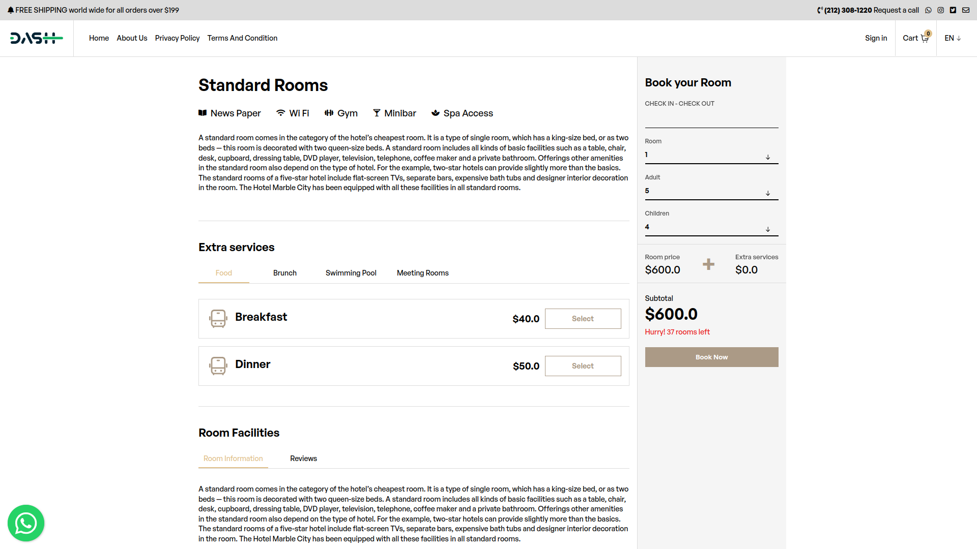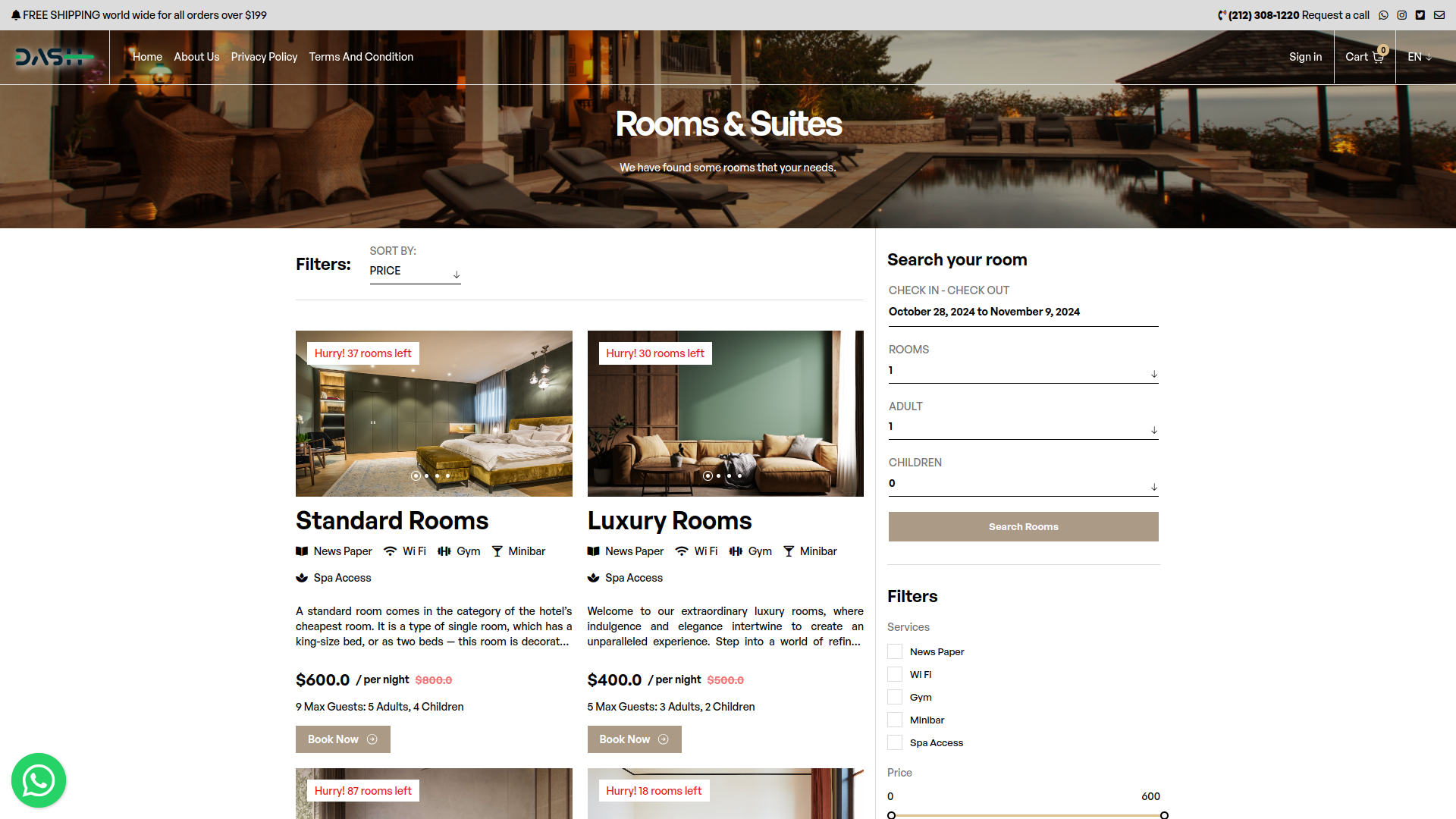Make your Booking process fast and convenient for your customers. select date of when you want to stay in hotel room and select the room your customers want to stay and after click on Book Now.